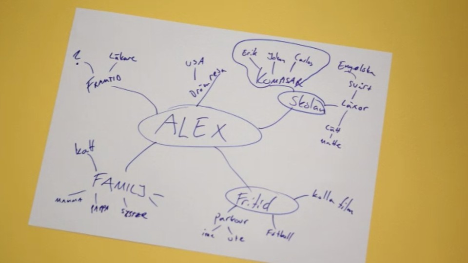 Alex är väldigt nervös inför en redovisning han ska hålla inför klassen där han måste använda sina egna ord och inte får läsa innantill. Han måste bland annat skriva en kreativ text om sitt fritidsintresse parkour. För att få hjälp träffar han en av Sveriges bästa parkour-utövare som visar honom hur man använder en tankekarta. För att återberätta en svår artikel inför klassen får Alex också lära sig hur man använder en mindmap, något som påminner om en tankekarta men består av bilder istället för text. Kommer hjälpen han får att räcka? Och kommer hans nerver att hålla?