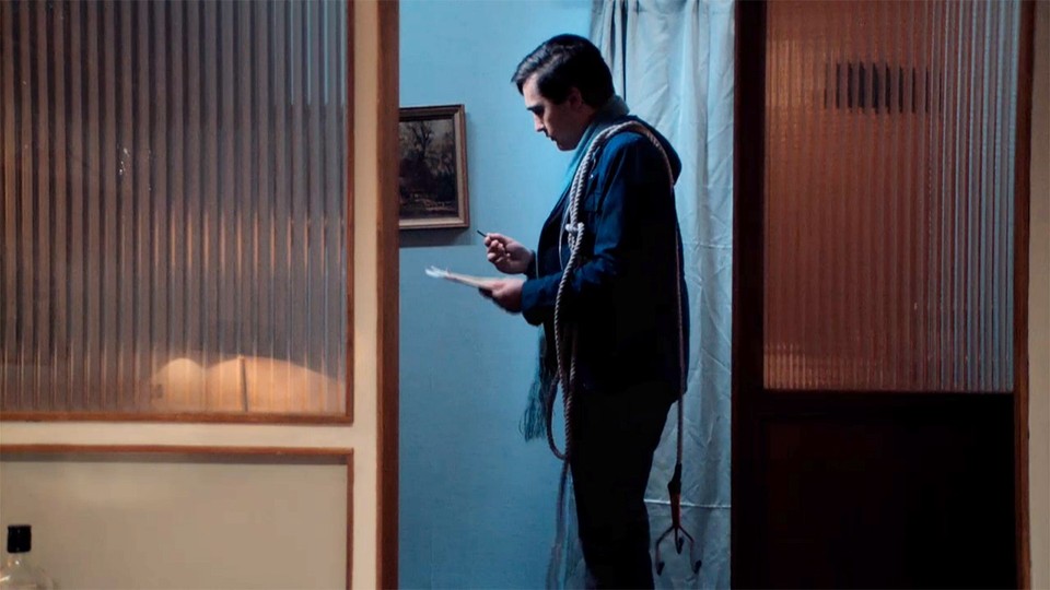 Nouf-Nouf apterar dynamit på bakdörren och fäster en stubin vid detonatorn. Samtidigt på taket försöker Miss Piggy övertyga Constantin att stjäla Jean-Lucs bil och parkera den på baksidan. Constantin funderar igenom sina alternativ. I ena handen håller han brevet och i andra nyckeln till bakdörren. Del 9 av 10.