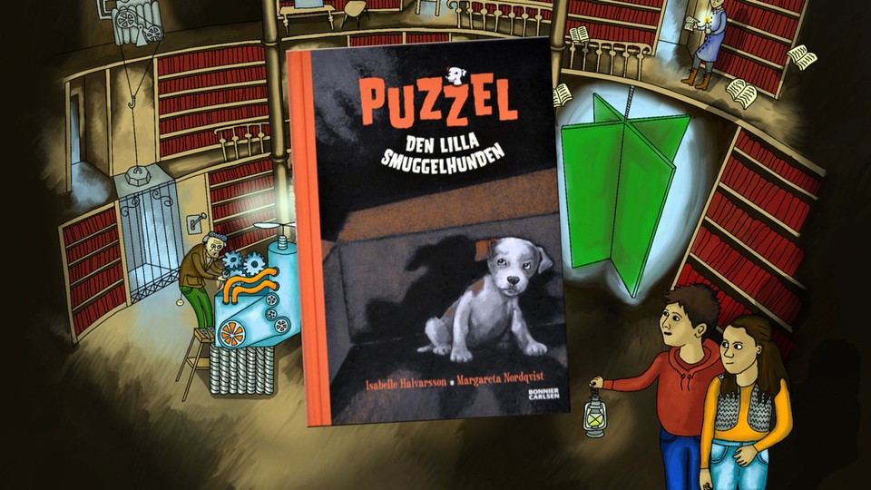 Del 4 av 10. Jakob och Emma hittar till ett magiskt bibliotek med en vresig vaktmästare, medhjälparen Bokormen och en bibliotekarie som kämpar mot onda krafter. Här finns också en mystisk bokläsningsapparat som introducerar bra böcker - denna gång "Puzzel, den lilla smuggelhunden" av Isabelle Halvarsson.