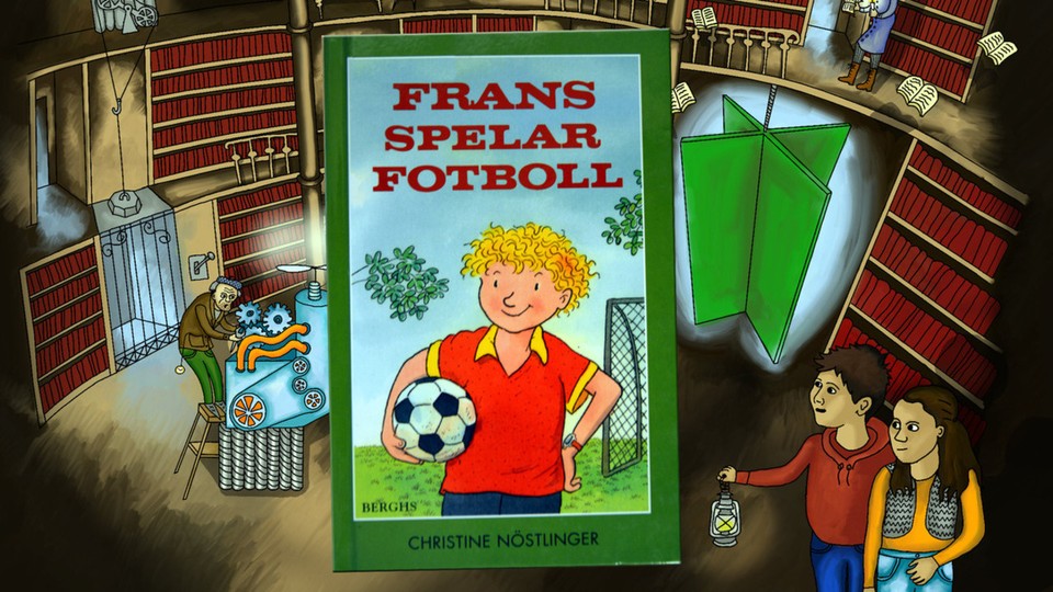 Del 7 av 10. Jakob och Emma hittar till ett magiskt bibliotek där de möter märkliga karaktärer. Där finns en vresig vaktmästare, medhjälparen Bokormen och en bibliotekarie som kämpar mot onda krafter. Här finns också en bokläsningsapparat som introducerar bra böcker, denna gång "Frans spelar fotboll" av Christine Nöstlinger. I rollerna: Daniel Gustavsson, Viveca Jedholm, Yuosef Abdullah och Sabrin Mgadmi. Musik Anders Kampe.