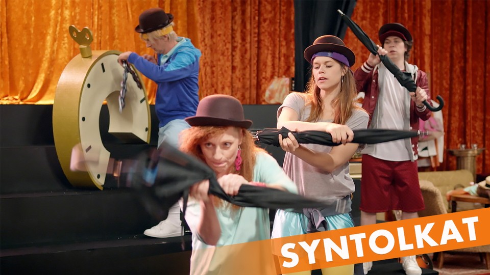 Del 6 av 8. Dagens bokstäver är C och K. Klockan går - kan det vara något att sjunga om? I Bokstavsbutiken har Dick och Doris lite svårt att förstå vad den stressade kunden säger. I Meningsbygget har Allan jobbat natt. Innan han somnade påbörjade han en mening som Maggan och Ferdinand nu måste slutföra.