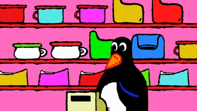 Idag ska Pino köpa en potta. Det ska bli kul. Pingvinen står bakom disken i pottaffären. Bakom honom finns en hylla full med intressanta pottor i olika färger och former. Vilken potta ska Pino välja? Får dockan sitta på pottan också? I programmet talas assyriska/suryoyo.