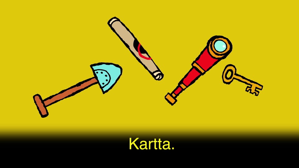 Pino hittar en skattkarta. Skatten finns på en ö som ligger långt bort. Nu väntar spännande äventyr! Det behövs en kikare, en spade, en nyckel, kartan och ett garnnystan. Vilka vill följa med? Följ med när berättartexten visas i karaokeversion samtidigt som du lyssnar på den.