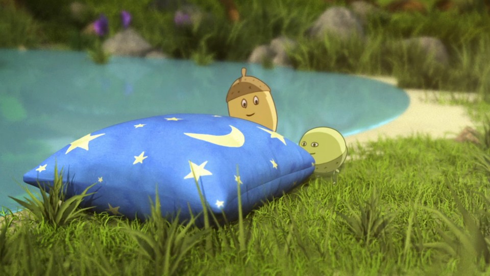 Tripp och Trapp hittar en kudde som de tar sig över sjön med. Bakom dörren i Träd mattetrollar barnen med mönster. I fågelholken sjunger koltrasten Kol-Erik en sång om stora och små saker som rimmar. I biografen visas en dokumentärfilm om Nancy som ska sova i egen säng för första gången. Bokfågeln berättar godnattsagan "Nallen" av Ulf Stark och Charlotte Ramel.