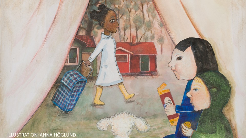 Baura Magnusdottir sitter vid trädet och samtalar med femåriga Wiggo. Han berättar om när han flyttade från Norge till Sverige. Reine Brynolfsson läser sagan "Tjingeling flyttar in" av Eva Susso. Petra Hellsing sjunger en låt på temat lägesord. Den heter "Vårat hus" och handlar om vad som finns på golvet och under bordet. Text och musik: Klas Widén.