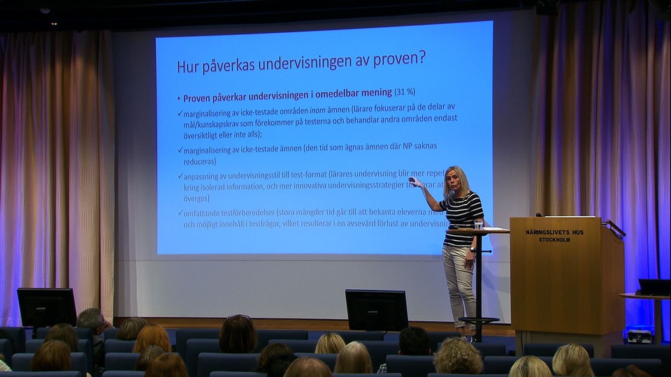 Antalet nationella prov blir fler och både lärare och elever känner sig stressade över mängden. Här berättar pedagogikforskaren Åsa Hirsh om ett nystartat forskningsprojekt som handlar om just nyttan med nationella prov. Studien fokuserar bland annat på hur lärare uppfattar att eleverna påverkas av proven, samt hur provresultaten kan användas för att se enskilda elevers behov. Inspelat på Näringslivets hus i Stockholm den 11 februari 2016. Arrangör: Skolporten.
