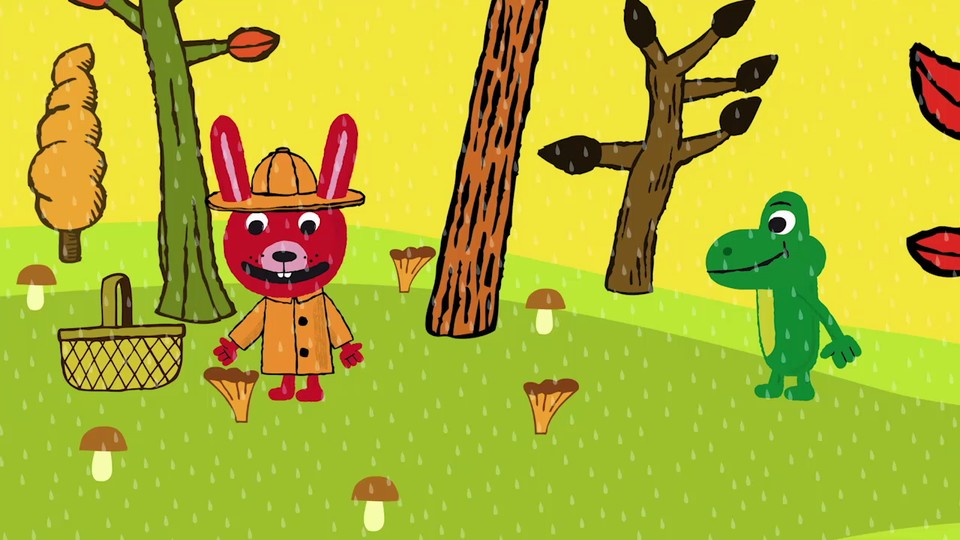 Kaninen Håkan och grodan Berit gillar olika väder. Idag regnar det lite men det hindrar inte vännerna från att göra en skogsutflykt för att plocka svamp. Svamp är gott tycker Håkan. Det är det inte tycker Berit. Men vad händer med vädret under utflykten?