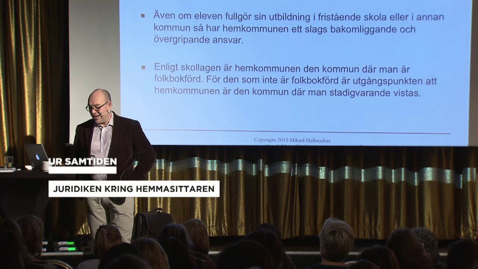 Vem ansvarar för elevens skolgång? Vad måste skolan göra? Vad får socialtjänsten göra? Mikael Hellstadius, skoljurist, svarar på dessa frågor och talar om juridiken kring hemmasittaren. Inspelat den 21 november 2016 på Göteborgs nation, Uppsala. Arrangör: Magelungen utveckling AB.
