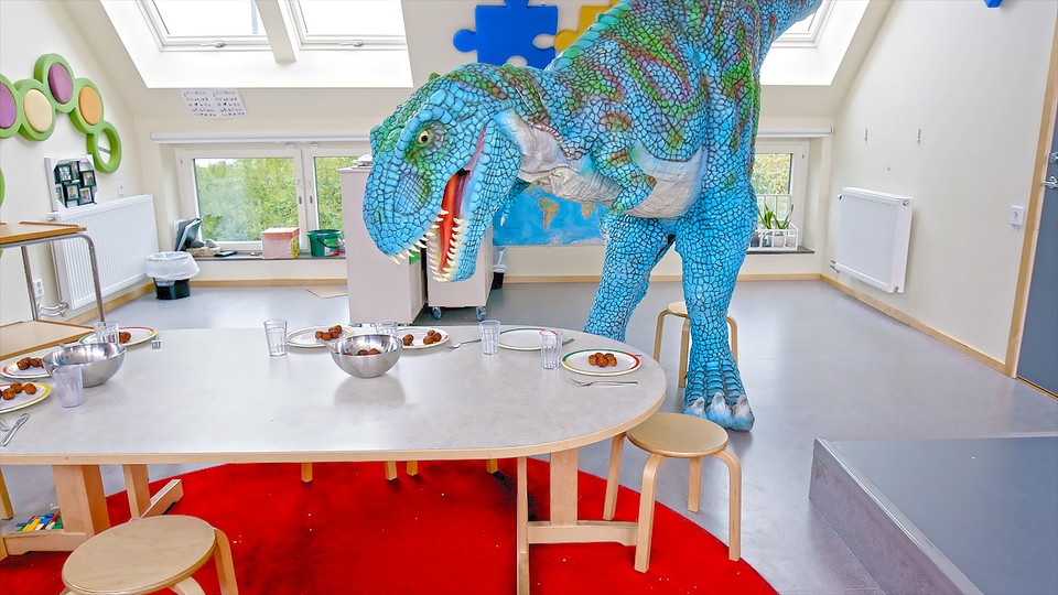 Förskolebarnen har hittat dinosaurien Tyra och nu går hon på deras förskola. Plötsligt börjar det försvinna köttbullar på förskolan. Någon har ätit fler än alla andra. Boven är Tyra som blivit hungrig av allt lekande! Hur många köttbullar har hon ätit?