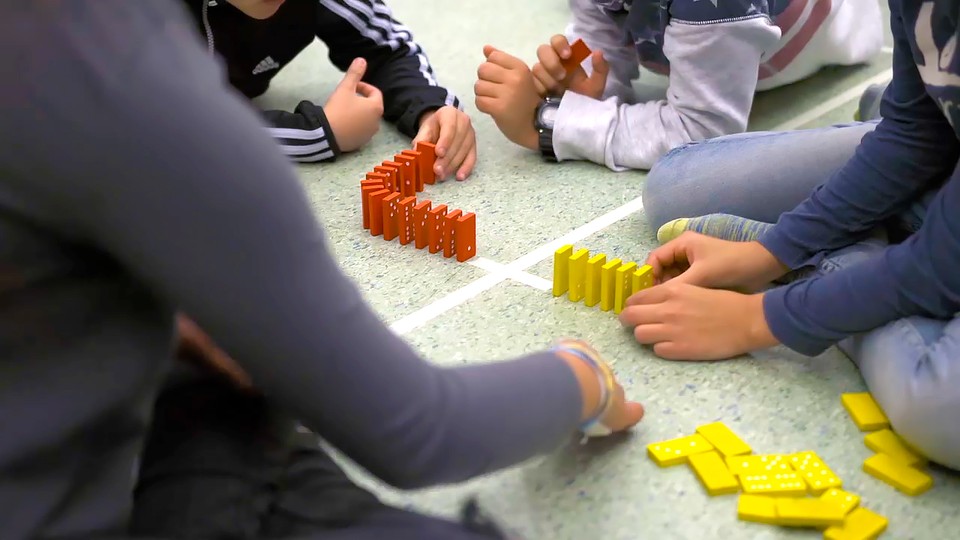 "Jag vill att eleverna ska se både nyttan och skönheten med matematik! " säger läraren Susanne Jönsson på Dalhemsskolan i Helsingborg, Susanne förenar matematik, språk och IKT i årskurs fyra. Hon tar hjälp av dominobrickor för att lära ut matematiska ämnesord som avstånd, kurva och spiral. Lektionen innehåller också en övning i förståelse av skala och förstoring. Som avslutning får dominobrickorna spela huvudrollen i lektionens "Grande Final", en jättelik dominobana!