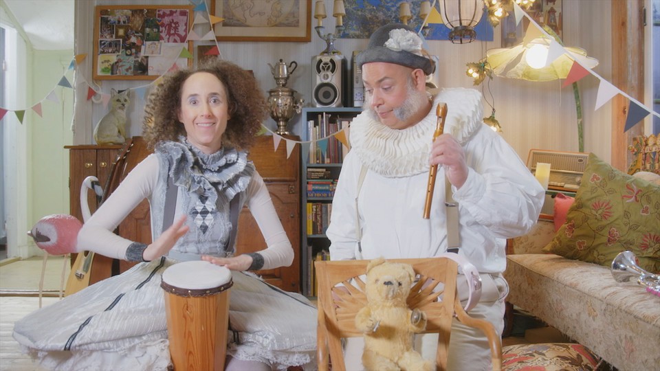 Filurerna Gordon och Penny har startat en orkester och repeterar för fullt hemma i sitt hus. Men Teddy verkar inte vara helt med på noterna, eller? Engelska för nybörjare.