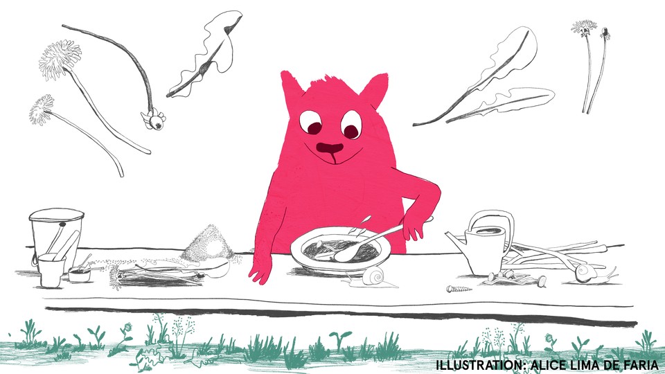 Baura pratar med 5-åriga Viola från Stockholm. Reine Brynolfsson läser sagan "Min restaurang" som Alice Lima de Faria har skrivit. Sagan handlar om all mat man kan laga i sandlådan med hjälp av sand, blad och spikar. Elias Eng Radjabi sjunger en låt om att vara hungrig.