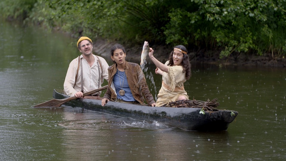 Del 3 av 8. Har Nims mamma verkligen också varit hos stenåldersjägarna? Vart tog hon vägen sedan? Och hur fungerar egentligen det där halsbandet? Nim och Fridolin försöker klura ut halsbandets gåta och hittar så småningom tiden och platsen där de kan resa vidare. De hamnar i ett frodigt grönskande landskap.