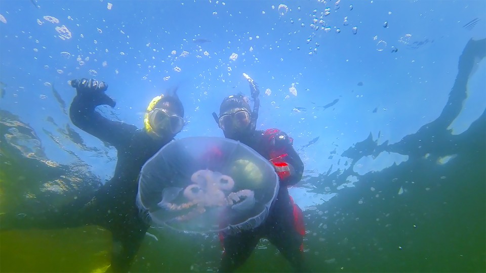 Gurgin snorklar längs klippor i Stockholms skärgård tillsammans med marin-biologen Ellen Schagerström. En mörk vattenyta kan verka skrämmande men vad finns egentligen där under? Gurgin och Ellen tittar närmare på några av de växter och djur som man kan stöta på när man badar i havet.