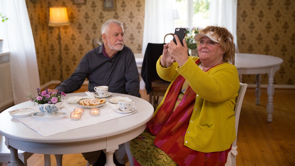Del 5 av 6. Seniorsurfarna ger sig ut på sociala medier-vågen. De får prova på olika sociala medier och ringa varandra med videosamtal. Gänget testar sig fram och tar bilder med roliga filter, Björn Hellberg får både öron och nos. Claes Malmberg blir chockad, är det sant att självaste Zlatan vill följa honom på Instagram? Och lyckas Ewa Fröling och Marianne Mörck lista ut var Claes Malmberg och Björn Hellberg befinner sig med hjälp av ett videosamtal?