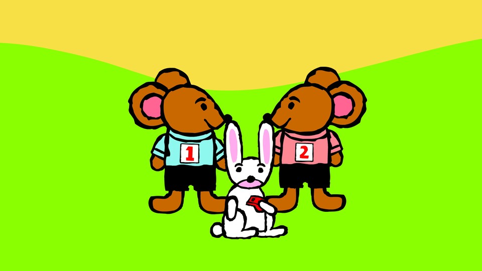 Pino och hans vänner tävlar. Publiken applåderar och tycker att det är en jätterolig tävling.