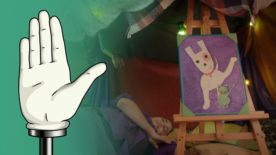 Idag är det sagostund! Amina hittar på en saga med handformen flata handen om en groda som inte kan simma!
