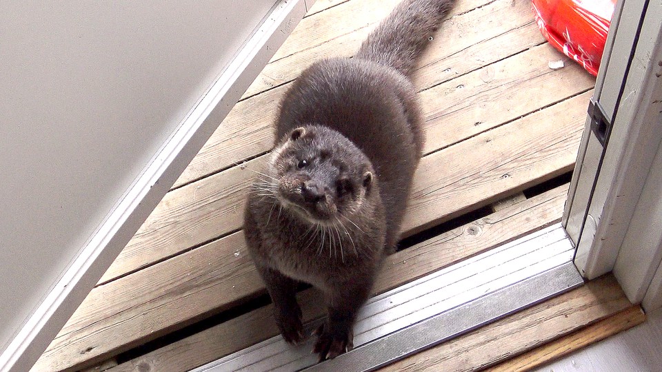 Sven och hundarna tar en tur ner till den frysta floden. Sven hittar ett hål i isen och dyker ner för att fånga fisk.
