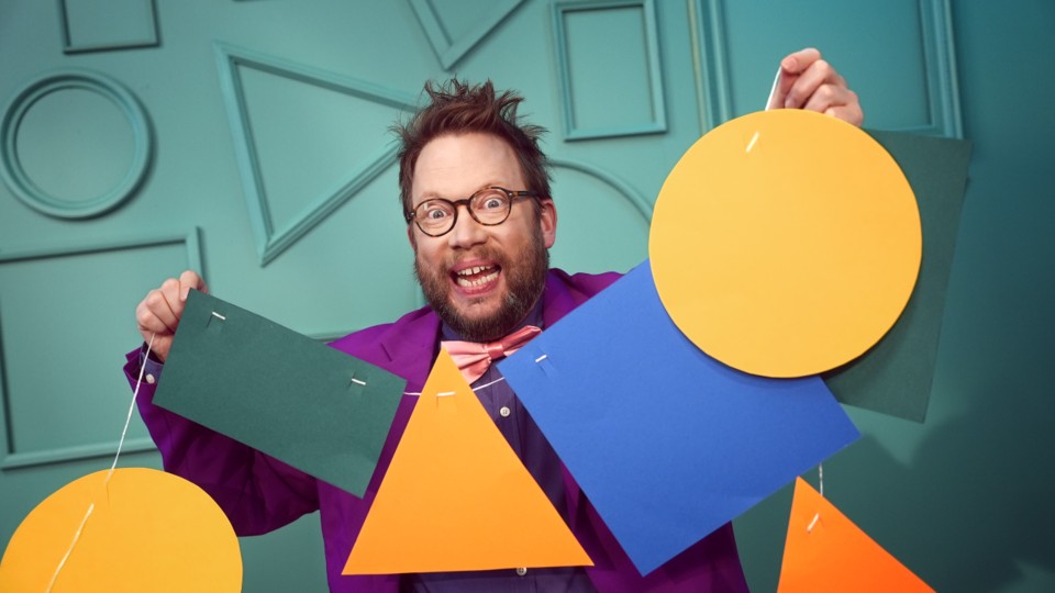 Te ska göra girlanger enligt en beskrivning som är svår att följa. Mat förklarar skillnaden mellan olika geometriska figurer och var man ska stå om man är bakom eller bredvid något.
