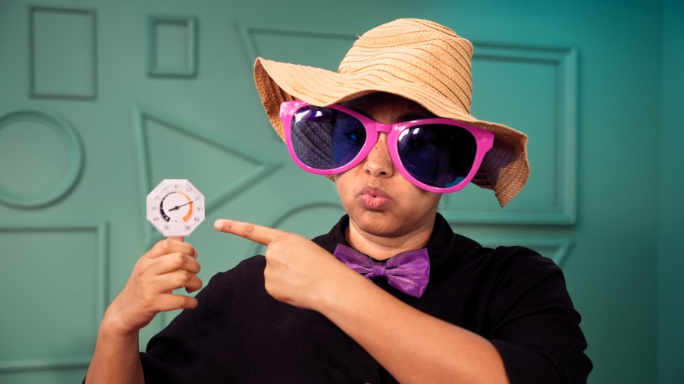 Mat fryser för att hon gick ut med alldeles för lite kläder på sig. Hon hade ju tittat på termometern och den stod på noll. Men det visar sig att hon missuppfattat vad noll grader egentligen betyder. Te förklarar hur vädret kan påverka hur varmt eller kallt det känns och hur en termometer fungerar.