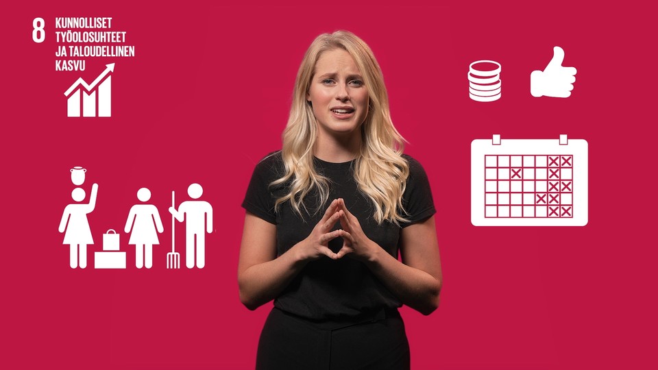 Alla kvinnor och män ska ha rätt till ett jobb med bra lön och anständiga arbetsvillkor. Dessutom ska allt barnarbetet utrotas och arbetsplatser ska följa de lagar och regler som finns. Det här främjar tillväxt och skapar nya jobb. Men vad kan du själv göra för att vi ska uppnå mål åtta?