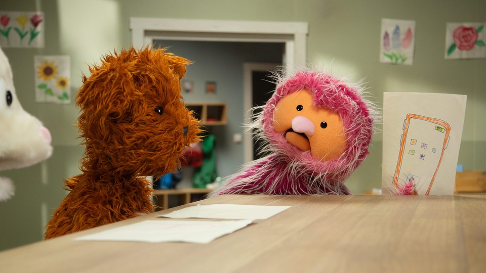 Kazoo har med sig sin mobiltelefon till skolan. Ull vill också ha en egen mobil. Tänk om Kazoo tycker att det är töntigt att inte ha det?