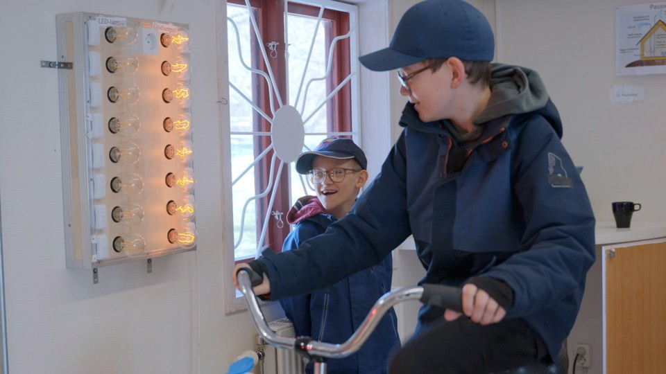 Vi lär oss om förnybar energi och klimatsmart elförbrukning! I Bonnarp i Skåne förbereder bröderna Arvid och Alfred en fest med enbart förnybar energi och bygger ett vattenkraftverk. En uppfinning som gör att de kan skapa elektricitet från bäcken de har på tomten. I Irak träffar vi Abdelrahman som visar hur solceller ger familjen förnybar energi i ett land där många använder fossila bränslen som skapar koldioxidutsläpp vilka bidrar till den globala uppvärmningen och luftföroreningar i Bagdad.
