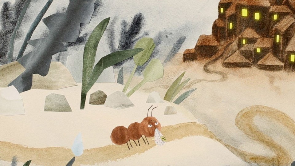 Marianne Prager läser en översättning till jiddisch av sagan "Myran" av Bisse Falk och Henning Trollbäck. Sagan handlar om myrans liv och när den bär hem mat till stacken.
