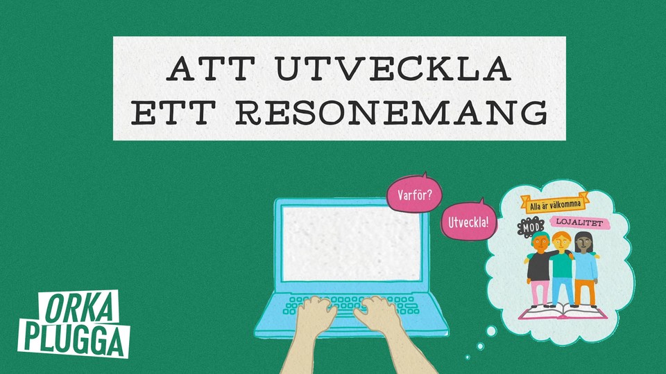 Att resonera är något du gör i flera ämnen och som du har användning av hela livet. Med resonera menas att du utvecklar dina tankar och åsikter. Ett resonemang ska förklara och fördjupa en tanke eller åsikt. Här får du tips på hur du gör för att föra ett väl utvecklat resonemang.