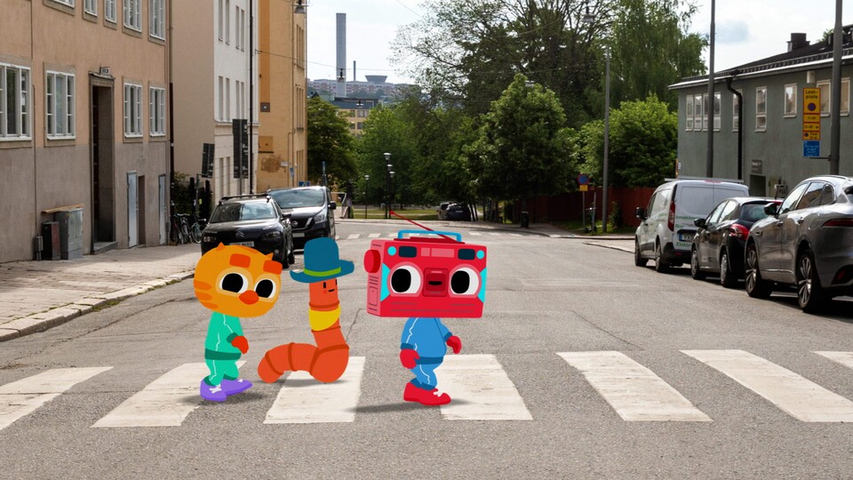 Med hjälp av musik och ramsor får barn i förskolan lära sig om hur man beter sig ansvarsfullt i trafiken. Figurerna hittar på ramsor och sånger om vad de håller på med. Stämningen är lekfullt utforskande och tanken är att uppmuntra barnen till att delta och sjunga med och på så vis lära sig trafikvett.