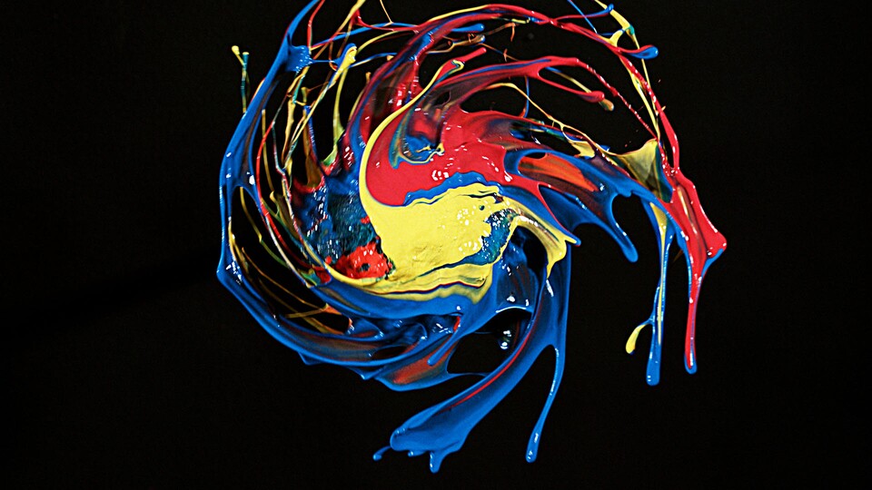 Två barn skapar förtrollade färgvirvlar med en elektrisk skruvdragare, olika penslar och väldigt mycket färg.
