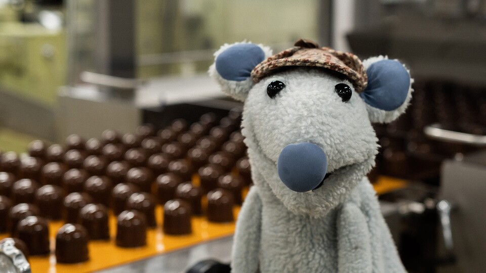 Måsse besöker en chokladfabrik och tar reda på hur chokladgodis blir till. Det blir i vanlig ordning en del provsmakning för Måsse.