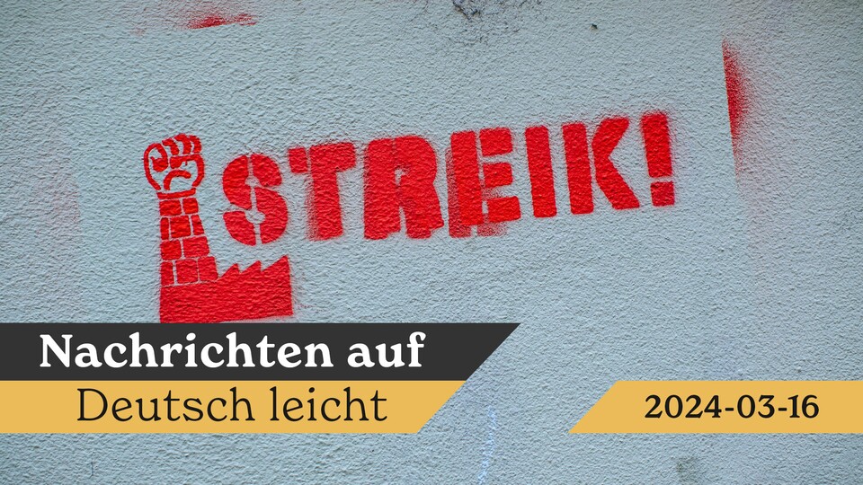 Nyheter på lätt tyska i ett långsamt tempo. Det strejkas överallt i Tyskland, vilket får stor inverkan på transportmedlen. Vi snackar med spårvagnsföraren Kira om varför hon har gått ut i strejk. I Österrike anordnas det mästerskap i snöbollskrig och så har Tysklands bidrag till Eurovision Song Contest stött på lite patrull.