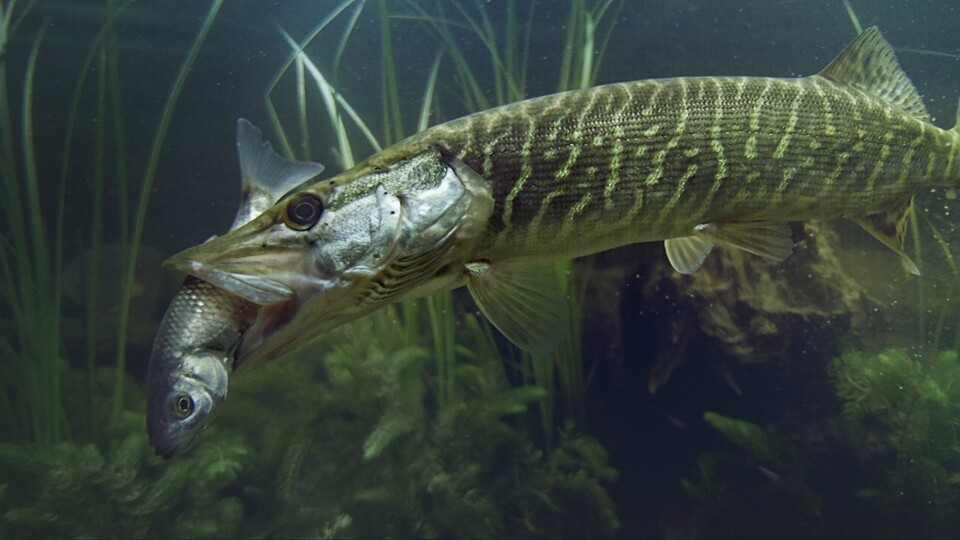På botten av sjön, gömd bland vattenväxterna, lurar en allätande jättefisk. Det är en gädda och den kan bli lika stor som ett sjuårigt barn. Den är snabb, hungrig och på jakt efter fisk.