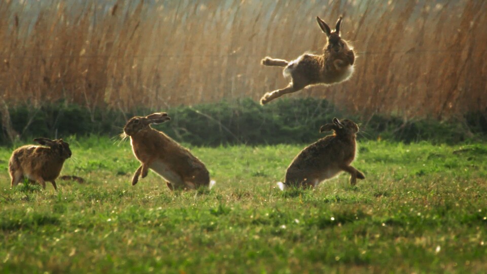 En harhona försöker att hitta rätt harhane att ha ungar med. Men först måste hanarna klara hennes test för att hon ska välja dem - rovdjursspaning, boxning och kapplöpning.