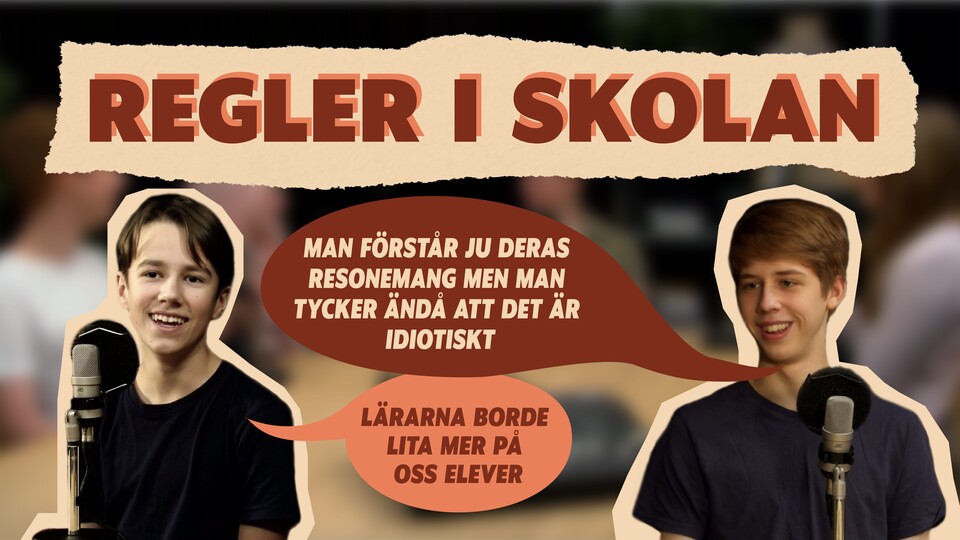Elever i årskurs 8 diskuterar regler i skolan, som till exempel mobilförbud och avstängning, och hur det påverkar deras vardag.