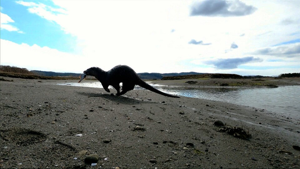 Sven följer med familjen till havet och lyckas hitta en lugn vik där vågorna inte är så höga. Han försöker fånga en flundra, trots att Pernilla trampar runt med sina tassar och gör vattnet grumligt.