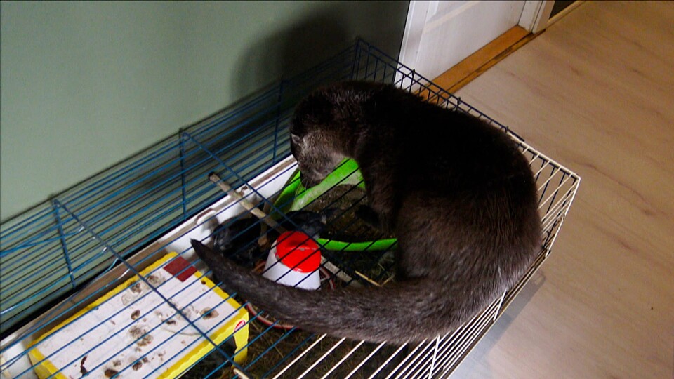 Sven letar efter de små fåglarna som han sett springa runt i huset. När han äntligen hittar dem, finner han dem instängda i en bur. Han gör allt för att öppna buren, övertygad om att de vill komma ut till honom.