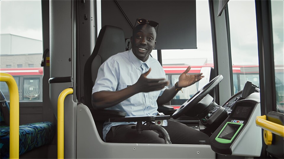 Den här gången är vi på en bussdepå och där träffar vi busschauffören Dennis. Han visar oss hur en buss fungerar. Innan vi åker ska bussen tvättas med jättestora borstar. Den blir så ren och fin. Sen bär det iväg. Dennis kör bussen och stannar vid hållplatserna så att människor kan gå av eller gå på för att åka med.