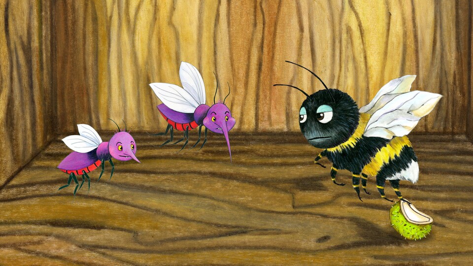 Djojj har samlat nektar som ska räcka hela vintern. Men en dag när han kommer hem till sitt humlebo så är all nektar borta. Djojj flyger ut för att spana efter tjuvarna.