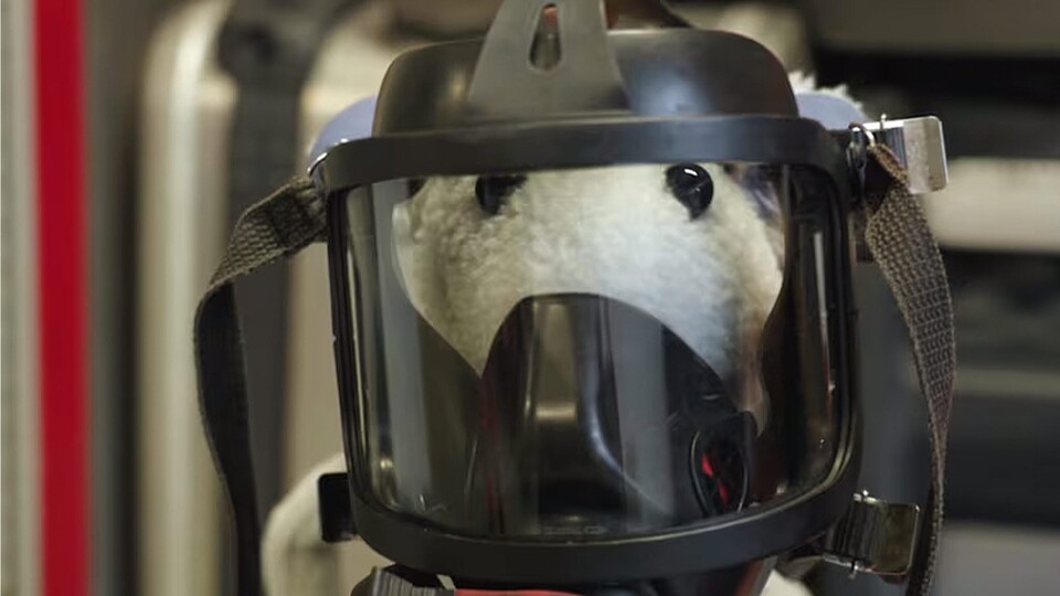 Måsse undersöker en brandbil. Visste du att det finns mycket mer än bara slangar i en brandbil? Till exempel olika motorsågar!