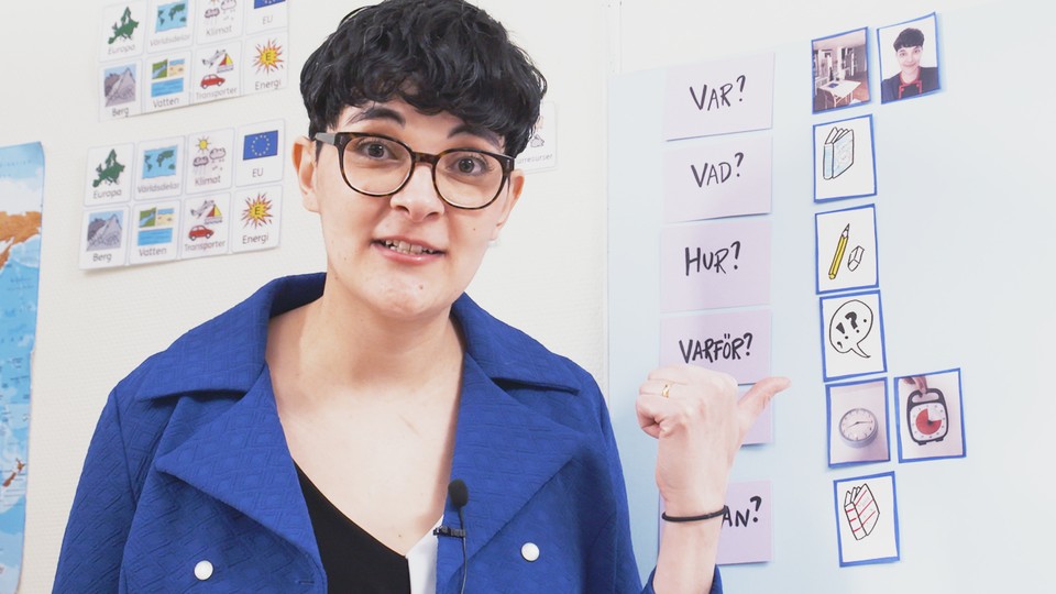 Specialpedagogen och lärarmentorn Sanna Löfgren förklarar och exemplifierar hur hon använder sig av bildstöd i sitt klassrum. En arbetsstuktur som skapar både tydlighet och trygghet. En metod som är bra för samtliga elever, även elever med NPF.