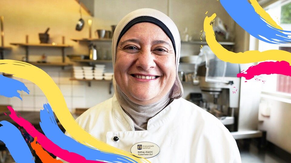 Ibtihaj Alarini arbetar som kock på Näsbygårdens förskola i Kristianstad. Hon kommer från Palestina och kom till Sverige redan 2001. Hon visar och berättar från förskolans kök. Ibtihaj är en engagerad person som tycker om att göra mat som passar ihop med det som förskolebarnen ska lära sig. På fritiden lägger hon upp bilder från sin matlagning i sociala medier där hon har många följare.