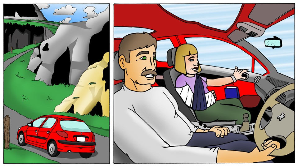 Annas föräldrar har hyrt en bil med GPS under semestern. Men det är bara Anna som hör vad GPS-rösten verkligen säger...