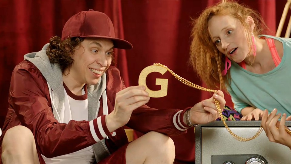 Del 12 av 16. Bokstaven G kommer till teatern i ett kassaskåp. Ami, Bruno, Coco och Dani gör en show om guld, men hur ska de enas om vad de ska ha på sig? I Bokstavsbutiken blir Dick nervös över att guldgrävaren ska få guldfeber av ett förgyllt G. Poliserna Lök och Sök försöker hitta rimmet till Buga och Stuga men blir störda av ett surrande flygfä. Livet i Bokstavslandet är ett underhållande ABC-program om vardagen i landet där bokstäver betyder allt.