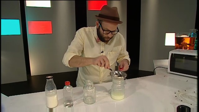 Se hur du kan göra egen plast genom att blanda varm mjölk och lite ättika. Resultatet blir något som kallas för kaseinplast. Du får också en kort genomgång av vad plast är för typ av material.