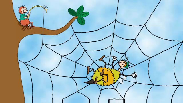 De hungriga spindlarna Imse och Vimse försöker fånga in dagens lunch i sitt nät. Snälla Vimse känner medlidande med de insekter som fastnar. Översättare och uppläsare: Lily Huss (Yiqing Guo).