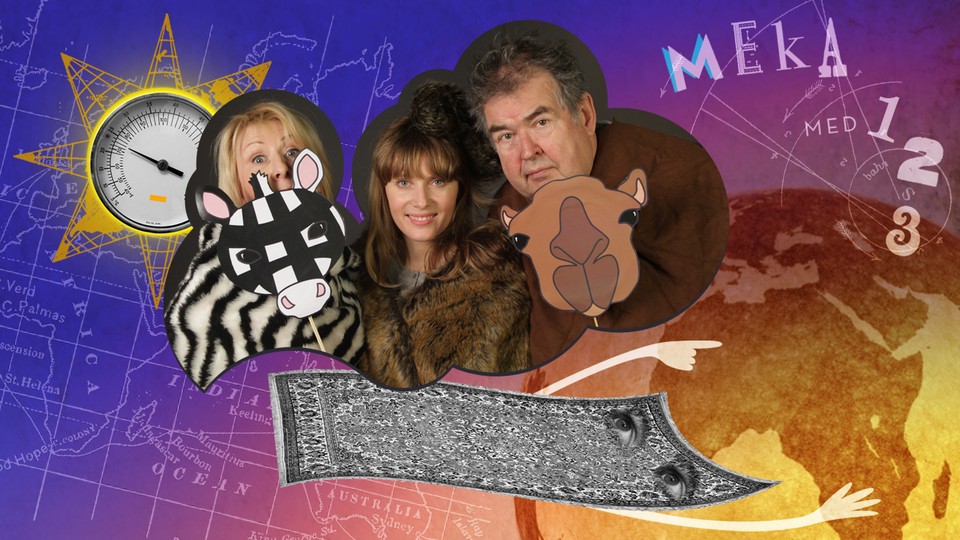 Schacklin, Minus och Timpani reser på den flygande mattan mot Namibia i Afrika. De har hjälp av en karta för att se hur de ska flyga och de jämför den med verkligheten. De flyger söderut med hjälp av en kompass. Det tar flera dagar och nätter att flyga över hela Europa. Men en dag är de framme på savannen i Namibia! De sjunger "Ett två tre på det fjärde ska det ske".