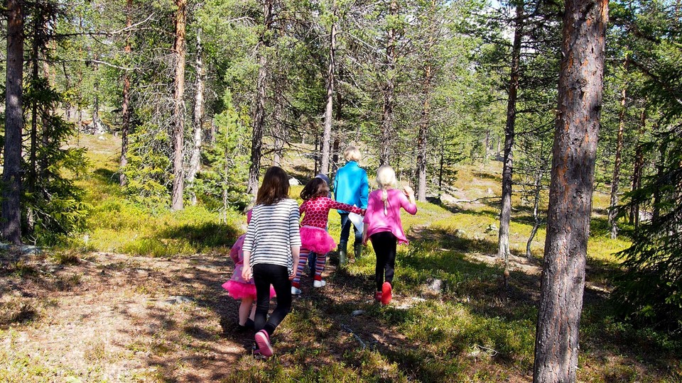 I skogen finns det mycket spännande att se och höra. Kanske en saga om Stállu, den läskiga jätten? Per Erik och Birgitta vandrar runt i en skog där de hör olika historier på svenska och på lulesamiska. De ser bockar på en bro och hör en vaggsång om Stállu. Till slut drar de till fjälls med hjälp av en vandringsjojk.