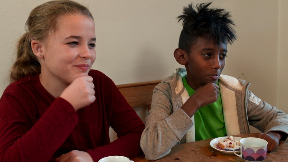 Del 1. Sara och John fikar hos sin mormor. Hon berättar att grannhuset, där hon bodde när hon var liten, har stått tomt länge. Barnen blir nyfikna och smyger iväg för att undersöka huset. Vi lär oss tecken för saker som bland annat finns i köket.